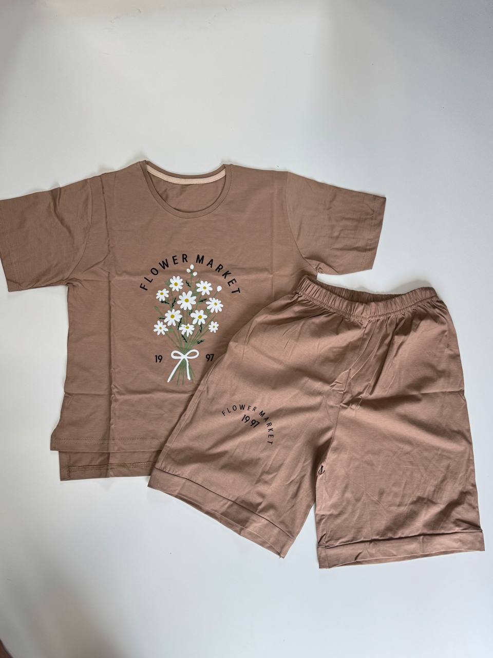 اگر به دنبال یک ست راحتی زیبا، سبک و لطیف برای استفادهی روزمره هستید، این ست تیشرت و شلوارک قهوهای گزینهای عالیست. طراحی چاپ گل دیزی همراه با نوشته “Flower Market | 1997” حس لطافت و سادگی را به ظاهر محصول بخشیده است. جنس نخپنبه باعث شده این ست هم برای تابستان و هم فضای منزل مناسب باشد. تنخور آزاد آن برای سایزهای تا ۴۴ کاملاً مناسب بوده و شستوشوی آن با آب سرد توصیه میشود تا دوام چاپ حفظ شود. با این ست، هم راحتی دارید و هم استایل ساده و شیک .